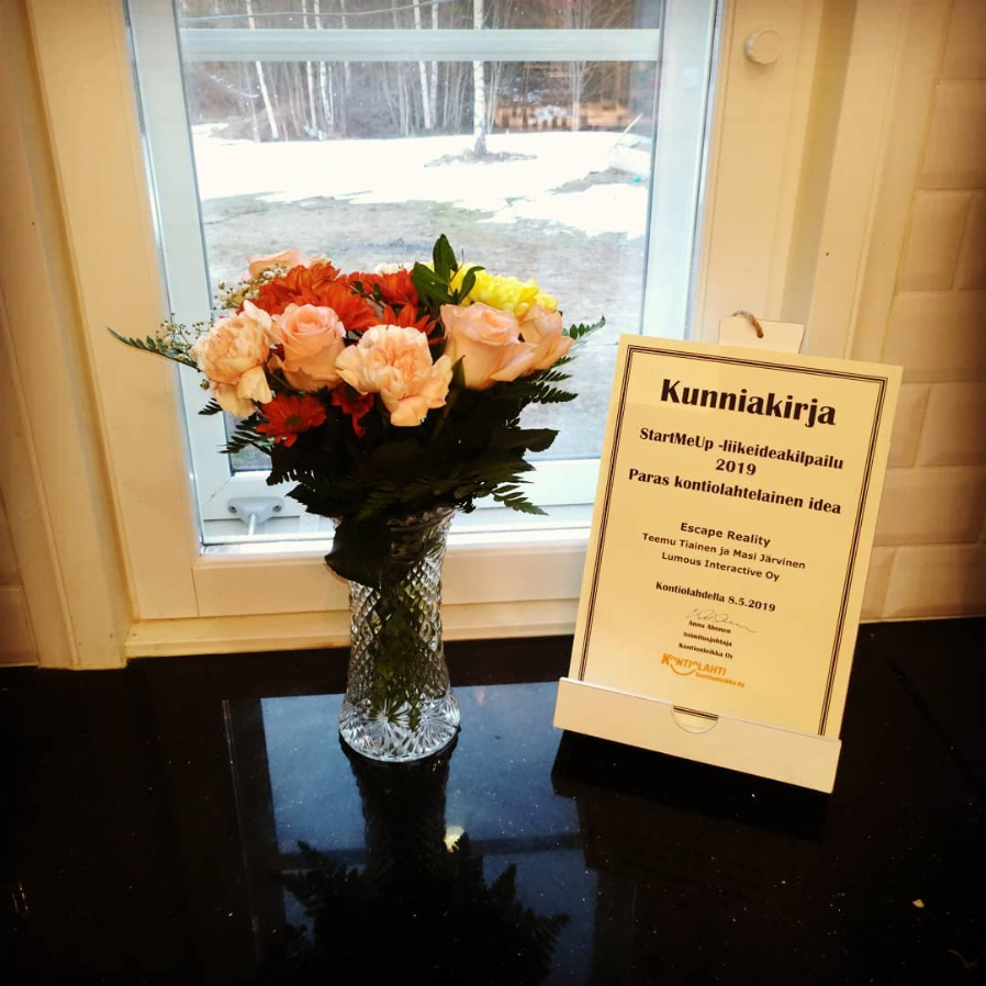 Lumous Interactive participated in StartMeUp -business idea compitition held by Business Joensuu, from which our CEO has won a prize before. Our competition idea was about creating an escape game that links VR in to real life objects, taking the experience to another level. The idea was awarded as the best idea from our hometown of Kontiolahti, which gives us a change to pilot the idea in real life. The idea was crafted with assistance from a partner with better knowledge of machine automation and this cooperation will continue with the project. We are also looking for other partners to try further develop the idea and possibly try it in an authentic escape game environment.